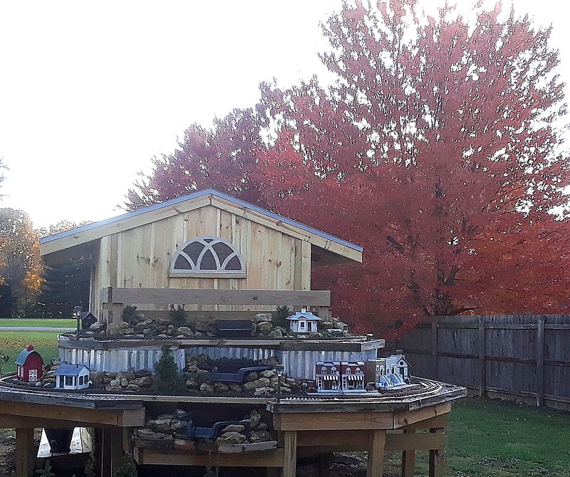 One reason I've been working so hard on my own railroad is that I think the approach I am using will benefit many of our readers. By raising the entire railroad - not just the roadbed - and only putting dirt where I actually want plants, I'm establishing an outdoor railroad that has a very stable roadbed and should require virtually no weeding. Plus, putting a tiny train shed on one end of the railroad means I won't have to schlep trains and power supplies out every time I want to run short trains for visitors.