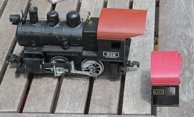 Because portions of my right of way are still "wobbly," I have yet to get my really big trains out and try them. I did replace the cab on an 0-4-0 that got dropped some years back and put away while I ordered a new cab. The new cab had a black roof and a custom name under the door. I left the name, but painted the roof with rust primer. Looks good, if I say so myself. Yes, I know the bell is missing. The bells are always getting knocked off these. I have a stash I ordered somewhere.