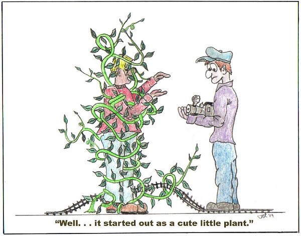 Plant Selection Basics for Outdoor Layouts: Plant Names![]() Yea they all do. Start out as cute little plants. Just as we all started out as cute little babies. NOW look at us. It amazes me how some folks start out with the idea of a "garden” train layout and wind up with "weed” train layout or a "desert" train layout (to avoid weeds!) Now I know none of us started into this hobby or acquired this addiction with the idea of becoming gardeners. Trains come first. That is understood. BUT if an old salty model railroader would take just a little time to give some thought to plant selection . . . well then their layout might look just a spiffy as the detail on their engines, rolling stock, or structures. Don’t get me wrong. I have seen some layouts that look like the National Arboretum. Some folks' plants would make a professional Japanese bonsai artist blush, but for the most part, outdoor layouts lack something to be desired when it comes to plant selection and maintenance. Maintenance will be another topic. This go-around I want to talk about plant selection. Before we begin lets have a little botany lesson on plant names. Now most folks just call plants by a simple name like. . ."holly", or "maple", or "that thing over there". Some get a little more sophisticated and go as far as saying "American holly" or "Japanese maple." That is okay but when you get down to the nitty-gritty of plants there are several types of American hollies and hundreds of different Japanese maples. Some of which would be good for an outdoor train layout and some not so good. What's in a Name?To better help resolve the identification of plants botanist came up with a naming system called the "Binominal System of Nomenclature" Impressive isn’t it? Well what it means is that any plant is given two names (bi + nominal = two names). This name is collectively referred to as the Specie name. For example a Japanese maple by it botanical/binominal name is Acer palmatum. Now most of you couldn't care less about such naming but my point is that if you look a little closer (as I said before) there are hundreds of different types of Acer palmatum plants. So the botanist came up with a further refinement of naming plants and the "sub-specie" name classification of cultivar was created. Now you might have an Acer palmatum cv. Ruby Lace. Or a Ruby Lace Japanese Maple by common name. Size Does MatterSo you might say. . . "Big deal!" Well there can be a huge variation of physical characteristics of the cultivars within a given specie. For example one cultivar might grow to a mature height of 15’ while another might get only 3’ in height. My vote would be for the 3’ plant on a large scale train layout. Just to have something more "to scale".So do ZonesOne more example might be that one cultivar might be hardy enough to live only on climatic zones 7 and 8 (southern zones), while another cultivar of the same specie might be hardy from zone 4 to zone 8 (northern, temperate, and southern zones). What this would mean is that plant A should not be considered in northern climates. It wouldn’t survive the winters. More to ComeI have several more articles in revision for publication here; hopefully Paul will be able to get them up as I get them to him.Note from Editor - The Laceleaf Japanese Maple shown in the inset of the title is actually a "Garnet," from Pacific Coast Maples. It could get as much as eight feet tall over its lifetime, which makes it one of the larger Laceleafs. I liked PCM's photo because it shows how a Laceleaf can lend itself to use as a miniature tree on a railroad, though. And in my native Ohio clay soil, it would take it many years to get much taller than 3'. With judicious trimming, I could keep it small indefinitely. - Paul |