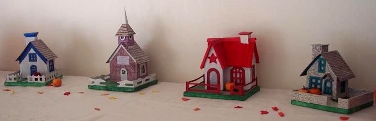 Thanks for getting in touch. Hopefully by now you've found our articles on making glitterhouses and other cardboard structures to go with your trains. The glitterhouse articles replicate those little Japanese-made, glitter-colored cottages that were popular from about 1928 on.