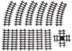 The curves come four to a package; you'll need 16 pieces to make a circle. If you click on the product numbers for each kind of track, it will take you to a store where you can order them. If you're in a real hurry, most hobby shops sell exactly the same track - write the product numbers down before you go to the store. Then when the rest of the track comes with installments 2 and 3, it will all plug together for an extra big layout.